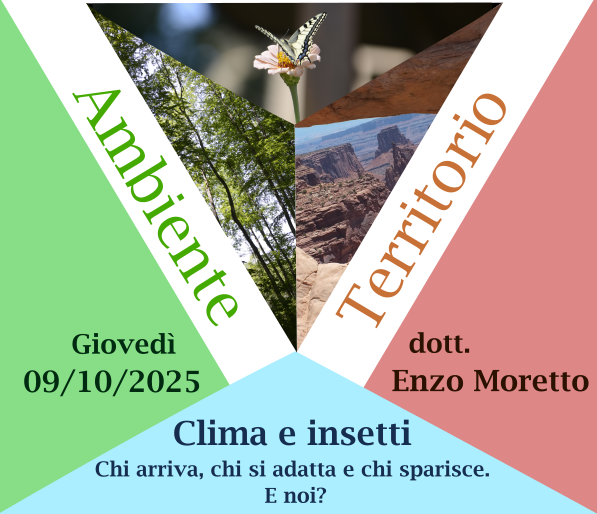 Le annuali serate di divulgazione scientifica quest'anno vertono sul tema "Ambiente e Territorio". Il 9 ottobre 2025 il famoso naturalista ed entomologo dott. Enzo Moretto ha aperto la rassegna con il seminario "Clima e insetti - Chi arriva, chi si adatta e chi sparisce. E noi?".