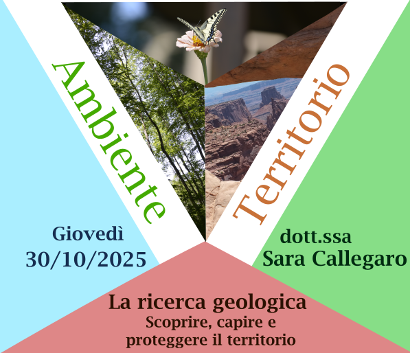Il secondo appuntamento con il ciclo "Ambiente e Territorio" si tiene il 30 ottobre e ha come tema "La ricerca geologica, scoprire, capire e proteggere il territorio". Relatrice è la dott.a Sara Callegaro, ricercatrice all'università di Bologna.