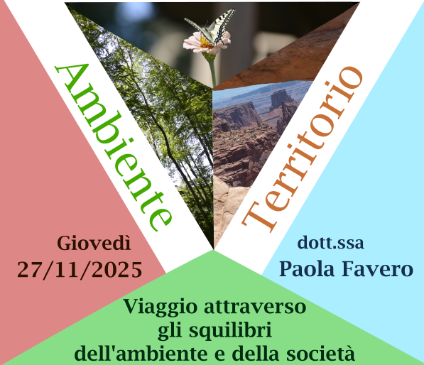 Il terzo e ultimo appuntamento di "Ambiente e Territorio" si tiene 27 novembre 2025 con la relazione della dott.ssa Paola Favero, scrittrice pluripremiata ed ex comandante forestale. Ci introduce il tema "Viaggio attraverso gli squilibri dell'ambiente e della società".