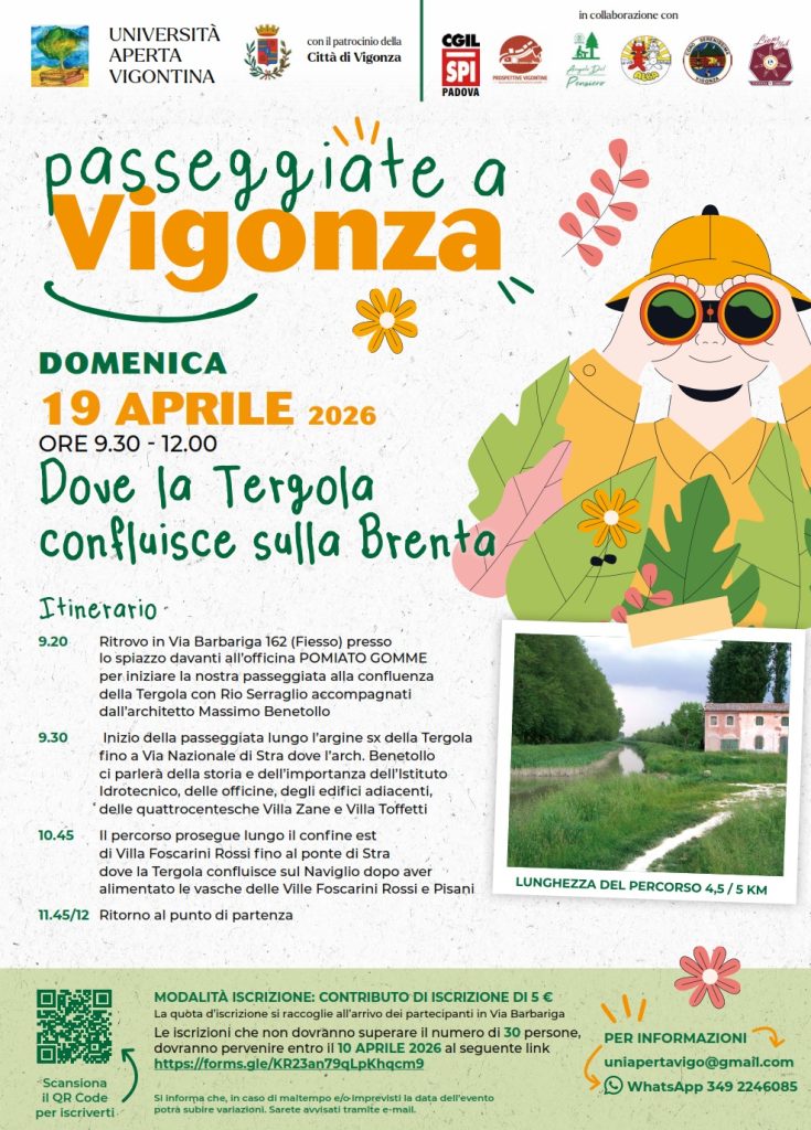 Per il 19 aprile 2026 è programmata la seconda passeggiata sul Tergola, il fiume che attraversa Vigonza.