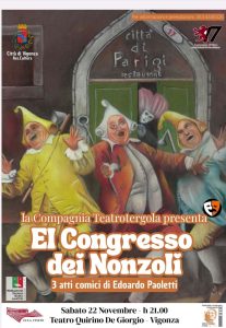 Il 22 novembre ritornano al Quirino De Giorgio di Vigonza più che mai brillanti, intriganti e stupefacenti “I Nonzoli” con il loro “Congresso”. Un cavallo di battaglia di Teatrotergola, rinnovato